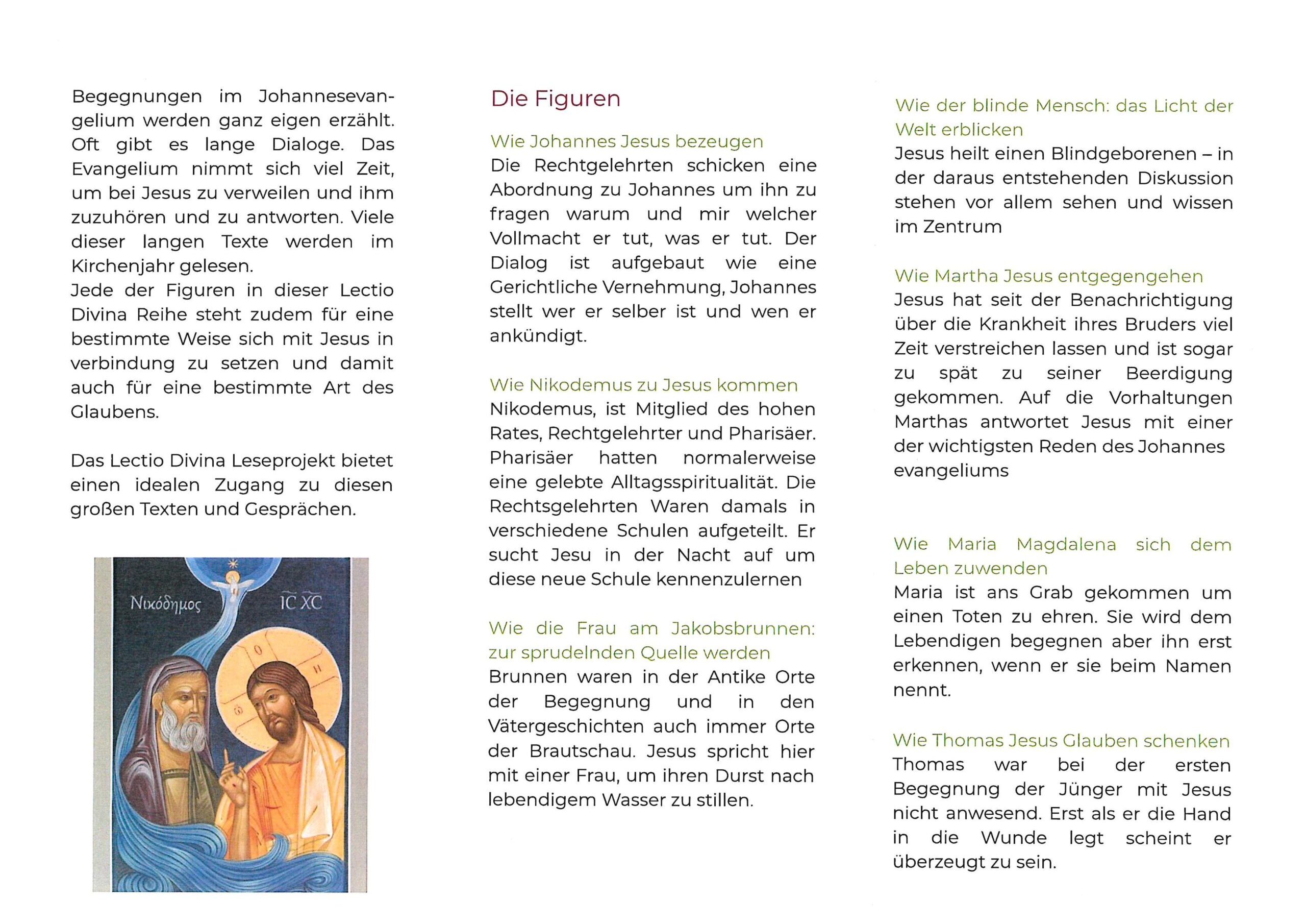 An jedem der Abende wird ein Abschnitt aus dem Johannesevangelium betrachtet: